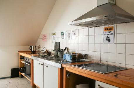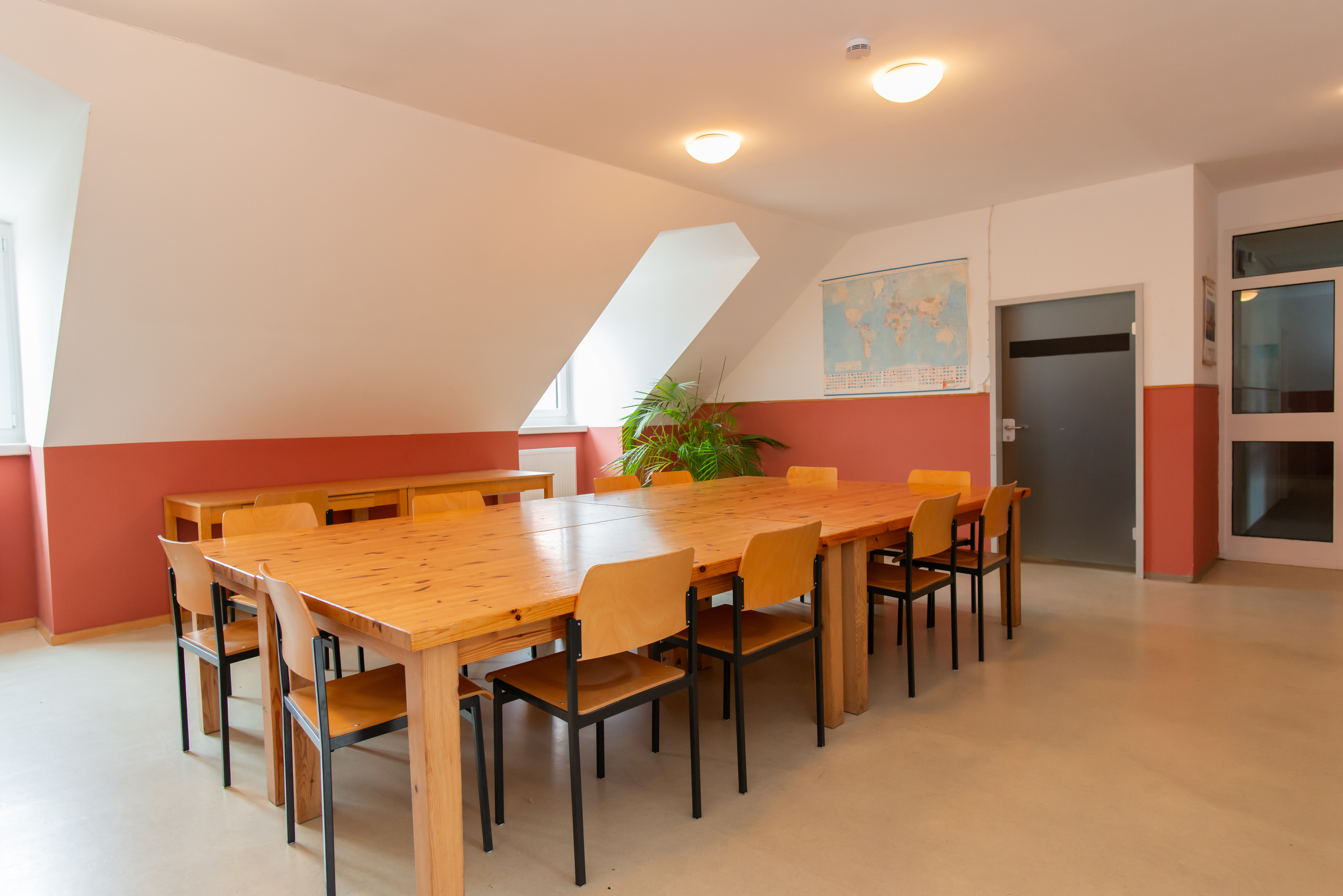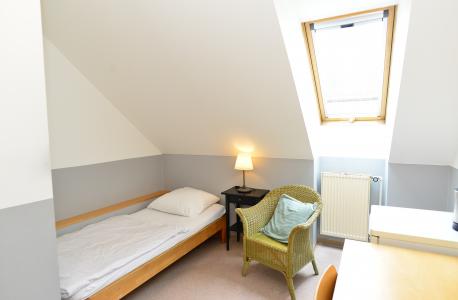 La disposición es la siguiente: En la 4ª planta hay 24 habitaciones individuales y dobles con ducha y WC propios, acceso a internet gratuito y una cocina en la zona común. Las habitaciones se encuentran en la misma planta que la academia y están comunicadas directamente con la misma.