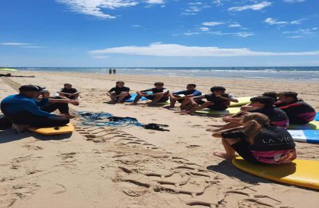 OPCIÓN CON SURF programa de 2/3/4 semanas: durante 2 semanas los estudiantes tienen clases de francés y clases de surf 4 veces por semana, adaptadas por nivel. Los estudiantes también participan con el grupo internacional en una excursión por semana. Para estancias de 3 y 4 semanas, se combina el programa de surf con una semana de multi-actividades (3 semanas) o dos semanas de multi-actividades (4 semanas) que incluyen deportes, actividades culturales y excursiones en grupos internacionales.