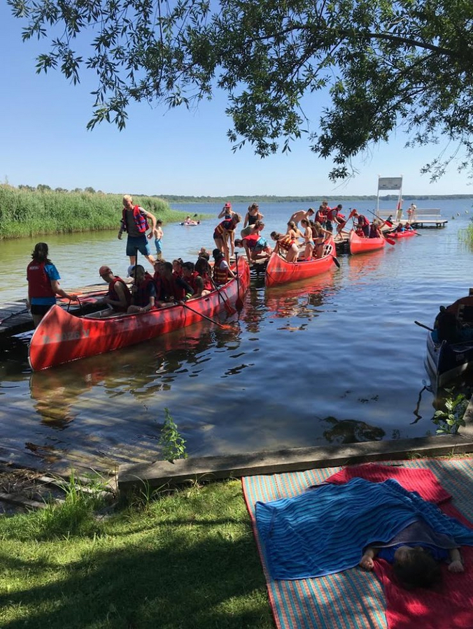 Este campamento de verano es genial si quieres aprender alemán y te encantan los deportes acuáticos como vela o practicar surf. El campamento está ubicado en el pueblo de Blossin, a orillas de uno de los lagos más hermosos que rodean Berlín. Este campamento tiene unas fantásticas instalaciones para practicar deportes acuáticos, así como muchas canoas, barcos a vela y equipamiento para practicar surf . Por las tardes, cuando las clases de alemán han terminado, se va en canoa, se hace vela o practica surf ¡Por supuesto, también hay beach parties y barbacoas a orillas del lago! Berlín está a sólo 30 kilómetros: Todas las semanas organizamos 2 excursiones a Berlín y de este modo se pueden ver todos los lugares más interesantes: el nuevo "centro" de Berlín:Potsdamer Platz, el Muro de Berlín, La Isla de los Museos ...